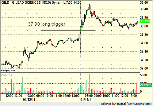 GILD triggered long (without market support due to opening five minutes) and worked: