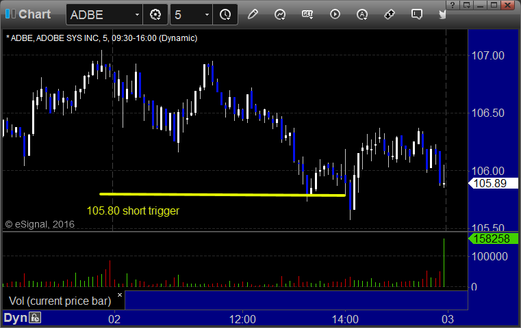 ADBE triggered short (with market support, ahead of the Fed) and didn’t go enough in either direction to count, closed near the trigger: