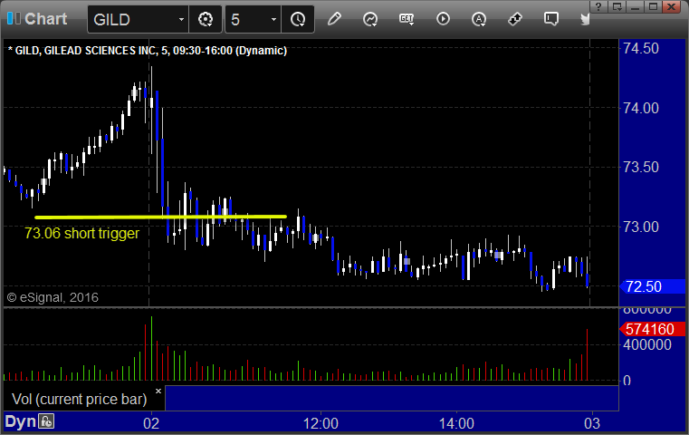 From the Messenger/Tradesight_st Twitter Feed, GILD triggered short (without market support) and worked enough for a partial: