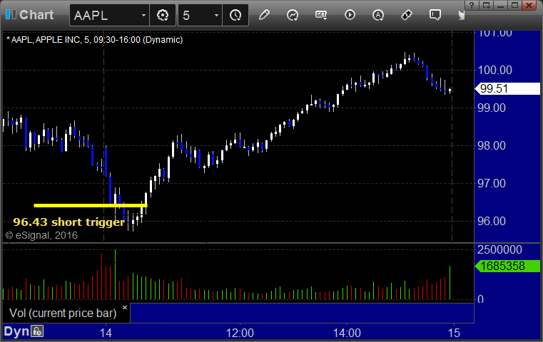 His AAPL triggered short (with market support) and worked enough for a partial:
