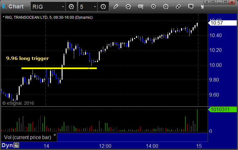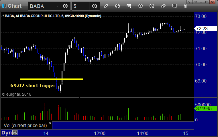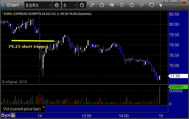 ESRX triggered short (without market support due to opening 5 minutes) and worked: