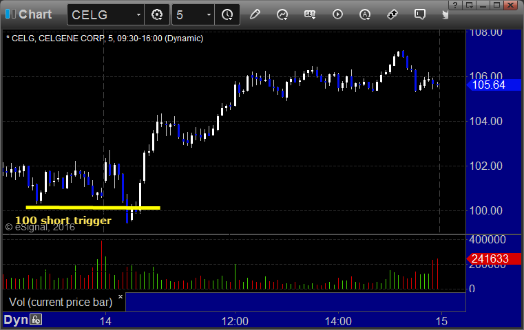Mark’s CELG triggered short (with market support) and worked enough for a partial: