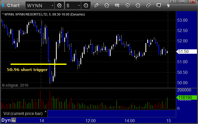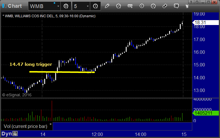 With each stock’s recap, we will include a (with market support) or (without market support) tag, designating whether the trade triggered with or without market directional support at the time. Anything in the first five minutes will be considered WITHOUT market support because market direction cannot be determined that early. ETF calls do not require market support, and are thus either winners or losers.