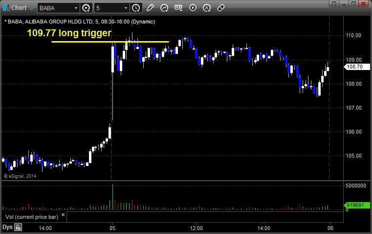 With each stock’s recap, we will include a (with market support) or (without market support) tag, designating whether the trade triggered with or without market directional support at the time. Anything in the first five minutes will be considered WITHOUT market support because market direction cannot be determined that early. ETF calls do not require market support, and are thus either winners or losers.