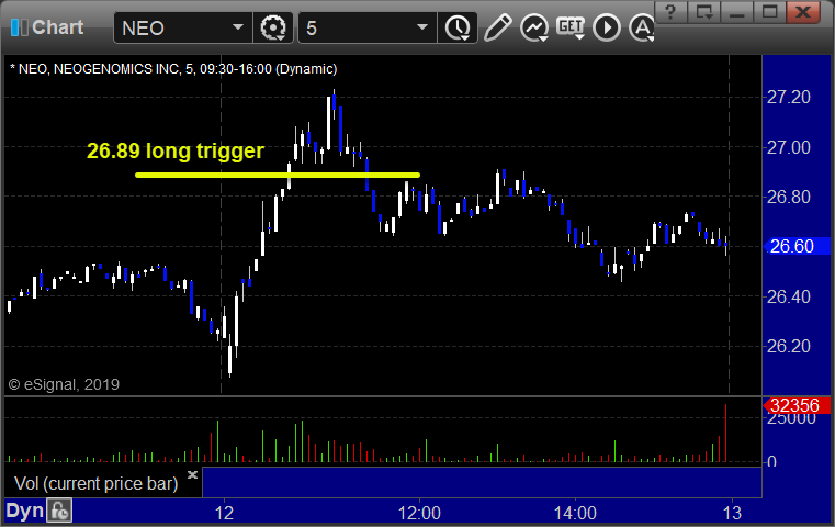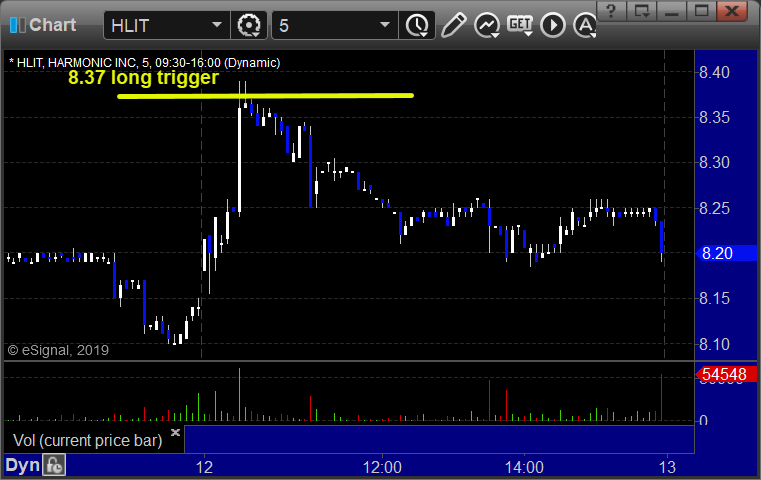 With each stock’s recap, we will include a (with market support) or (without market support) tag, designating whether the trade triggered with or without market directional support at the time. Anything in the first five minutes will be considered WITHOUT market support because market direction cannot be determined that early. ETF calls do not require market support, and are thus either winners or losers.