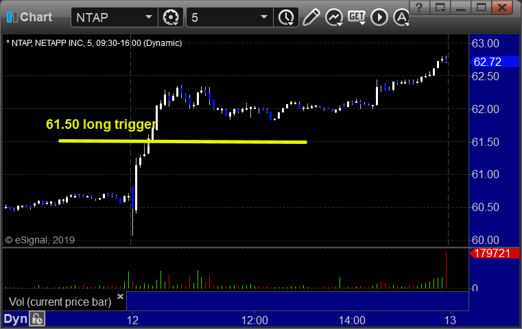 From the Messenger/Tradesight_st Twitter Feed, NTAP triggered long (with market support) and worked: