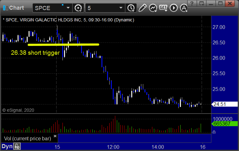 His SPCE triggered short (with market support) and worked:
