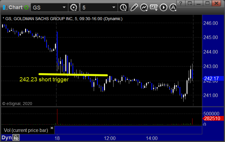 From the Messenger/Tradesight_st Twitter Feed, GS triggered short (with market support) and worked: