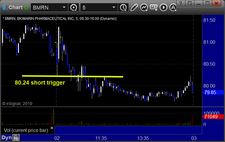 From the Messenger/Tradesight_st Twitter Feed, BMRN triggered short (with market support) and worked: