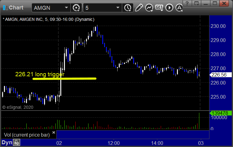 From the Messenger/Tradesight_st Twitter Feed, Rich’s AMGN triggered long (with market support) and worked: