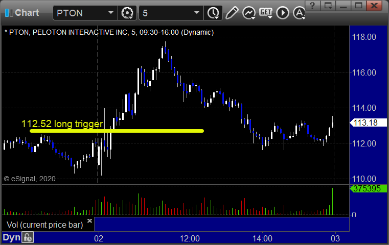 With each stock’s recap, we will include a (with market support) or (without market support) tag, designating whether the trade triggered with or without market directional support at the time. Anything in the first five minutes will be considered WITHOUT market support because market direction cannot be determined that early. ETF calls do not require market support, and are thus either winners or losers.