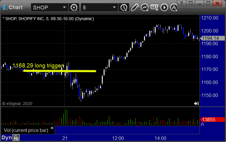 From the Messenger/Tradesight_st Twitter Feed, Rich’s SHOP triggered long (with market support) and worked enough for a partial: