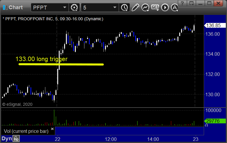With each stock’s recap, we will include a (with market support) or (without market support) tag, designating whether the trade triggered with or without market directional support at the time. Anything in the first five minutes will be considered WITHOUT market support because market direction cannot be determined that early. ETF calls do not require market support, and are thus either winners or losers.