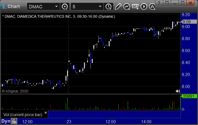 With each stock’s recap, we will include a (with market support) or (without market support) tag, designating whether the trade triggered with or without market directional support at the time. Anything in the first five minutes will be considered WITHOUT market support because market direction cannot be determined that early. ETF calls do not require market support, and are thus either winners or losers.