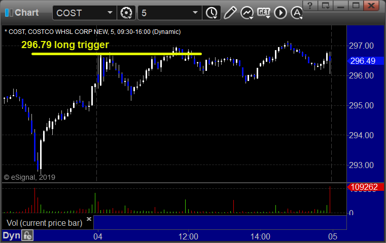 COST triggered long (with market support) and didn’t go enough in either direction to count, closed near the trigger: