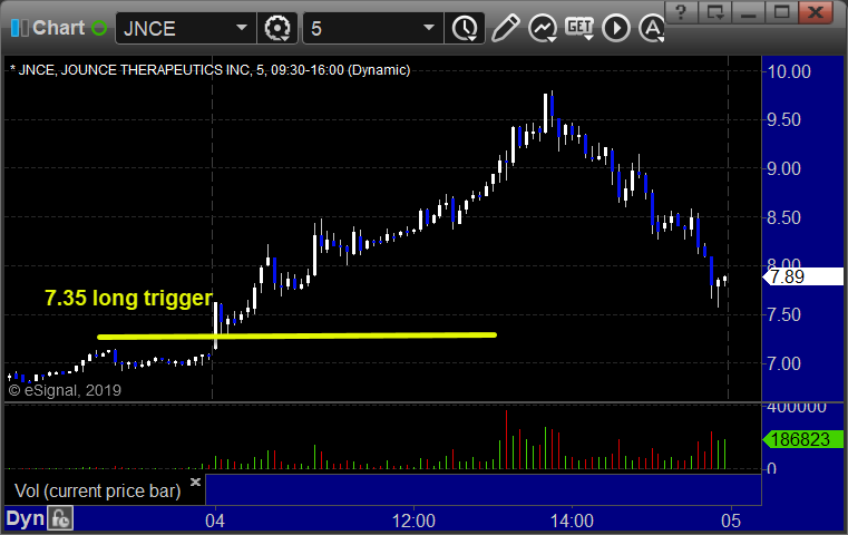 From the report, JNCE triggered long (without market support due to opening 5 minutes) and worked huge:
