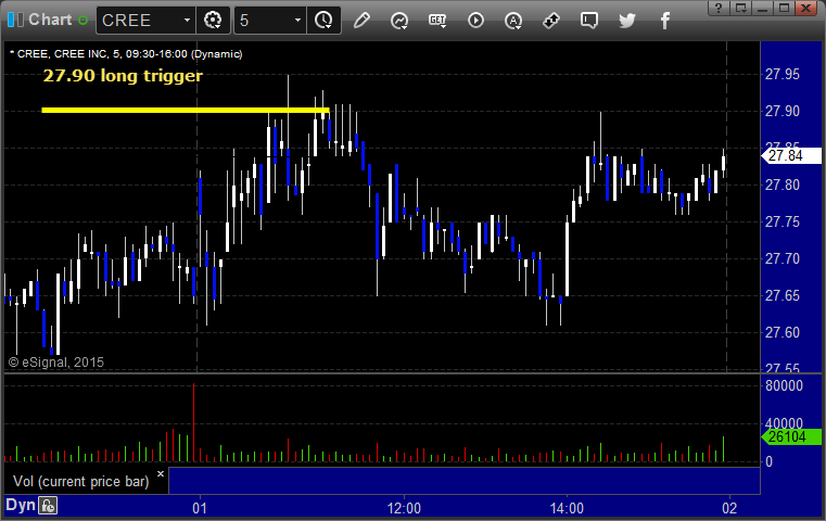 With each stock’s recap, we will include a (with market support) or (without market support) tag, designating whether the trade triggered with or without market directional support at the time. Anything in the first five minutes will be considered WITHOUT market support because market direction cannot be determined that early. ETF calls do not require market support, and are thus either winners or losers.