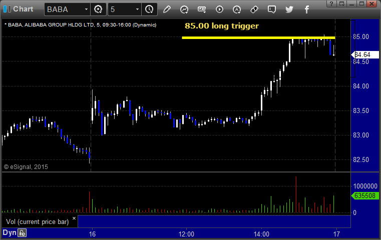 From the Messenger/Tradesight_st Twitter Feed, Rich’s BABA triggered long (without market support due to opening 5 minutes) and didn’t work: