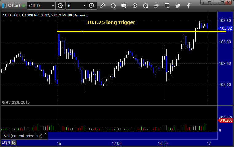 With each stock’s recap, we will include a (with market support) or (without market support) tag, designating whether the trade triggered with or without market directional support at the time. Anything in the first five minutes will be considered WITHOUT market support because market direction cannot be determined that early. ETF calls do not require market support, and are thus either winners or losers.