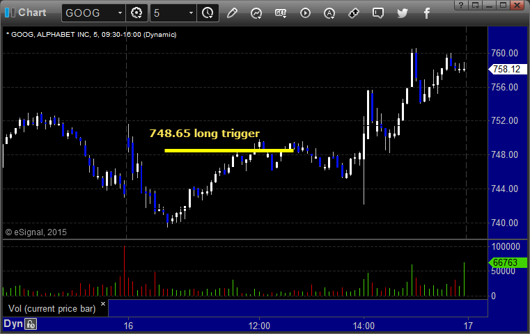 His GOOG triggered long (without market support) and worked enough for a partial: