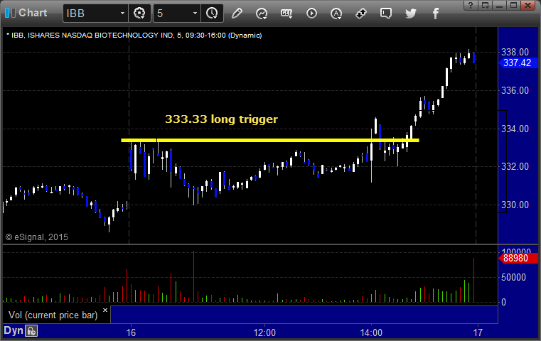 His IBB triggered long (ETF, so no market support needed, but triggered on the Fed) and worked: