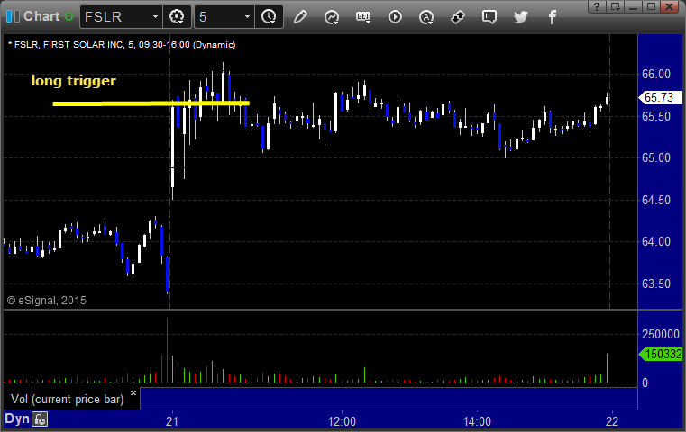 From the Messenger/Tradesight_st Twitter Feed, Mark’s FSLR triggered long (without market support) and worked enough for a partial: