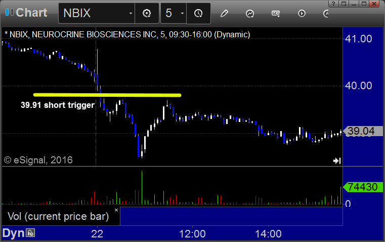 From the report, NBIX triggered short (with market support) and worked great: