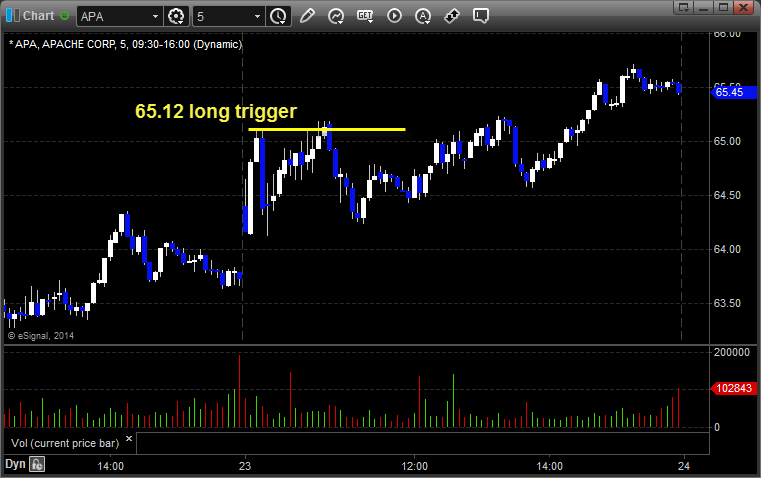 With each stock’s recap, we will include a (with market support) or (without market support) tag, designating whether the trade triggered with or without market directional support at the time. Anything in the first five minutes will be considered WITHOUT market support because market direction cannot be determined that early. ETF calls do not require market support, and are thus either winners or losers.