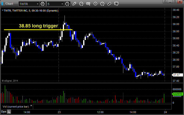 From the Messenger/Tradesight_st Twitter Feed, TWTR triggered long (without market support) and didn’t work: