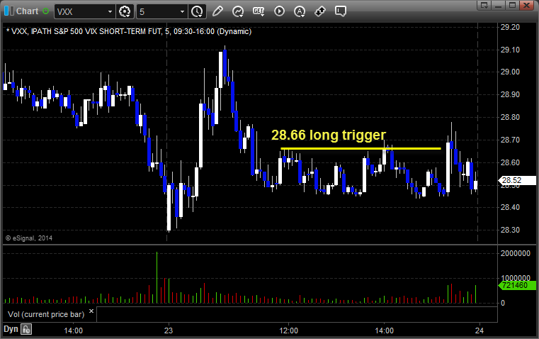 His VXX triggered long (ETF, so no market support needed) and didn’t work:
