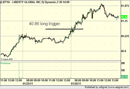 From the report, LBTYA triggered long (without market support due to opening five minutes) and worked great (never miss a top pick that triggers without a price gap on the stock: