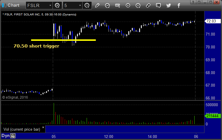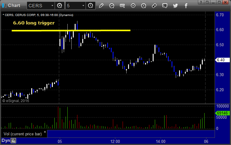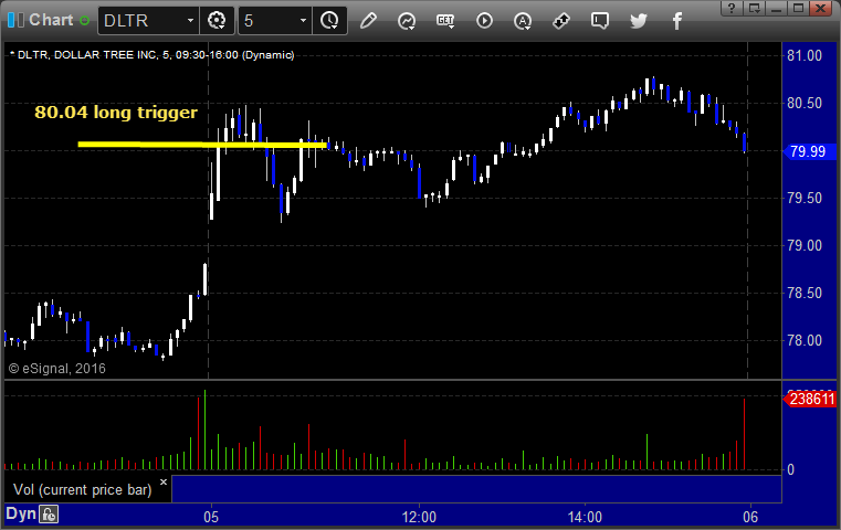 With each stock’s recap, we will include a (with market support) or (without market support) tag, designating whether the trade triggered with or without market directional support at the time. Anything in the first five minutes will be considered WITHOUT market support because market direction cannot be determined that early. ETF calls do not require market support, and are thus either winners or losers.