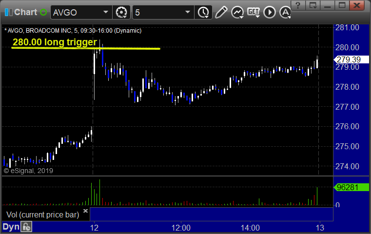 From the Messenger/Tradesight_st Twitter Feed, AVGO triggered long (with market support) and didn’t work: