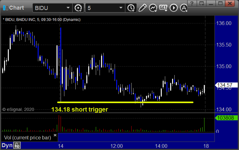 With each stock’s recap, we will include a (with market support) or (without market support) tag, designating whether the trade triggered with or without market directional support at the time. Anything in the first five minutes will be considered WITHOUT market support because market direction cannot be determined that early. ETF calls do not require market support, and are thus either winners or losers.