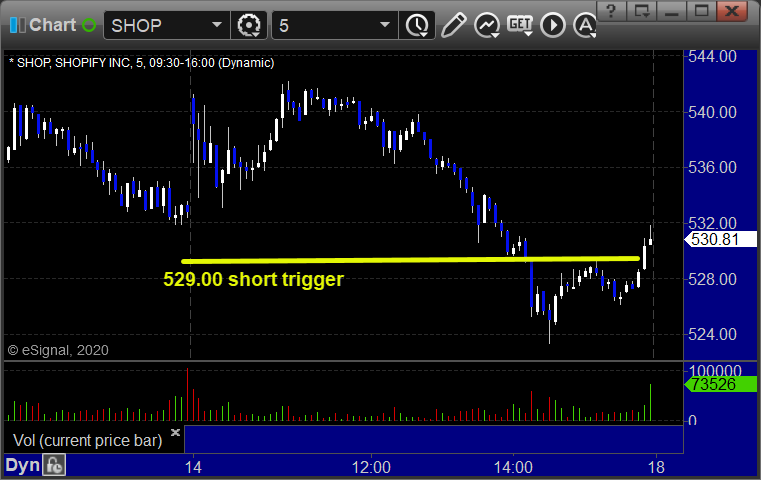 From the Messenger/Tradesight_st Twitter Feed, Rich’s SHOP triggered short (with market support) and worked great: