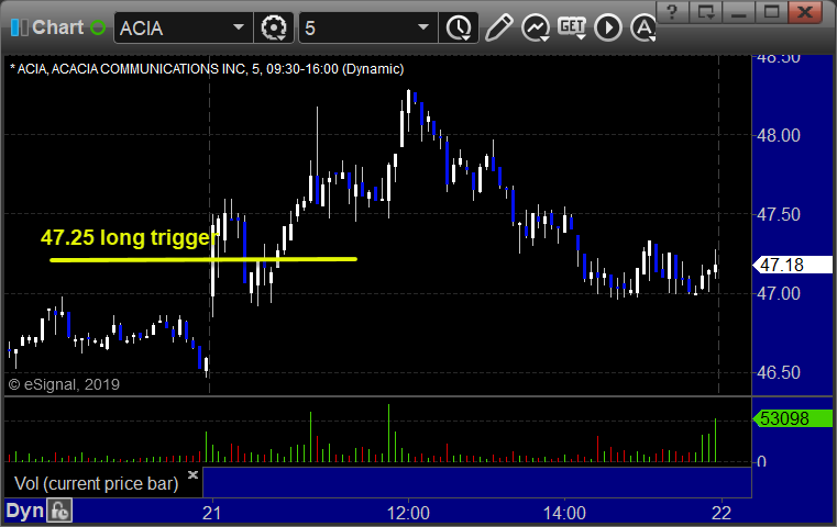 From the report, ACIA triggered long (without market support due to opening 5 minutes):