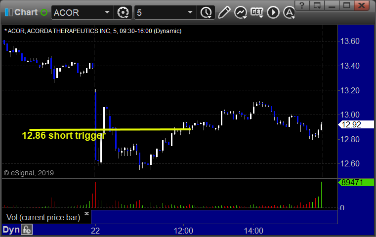 ACOR triggered short (without market support due to opening 5 minutes) and worked enough for a partial: