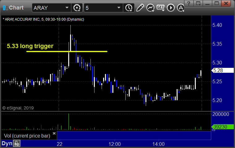 From the report, ARAY triggered long (with market support) and didn’t go enough in either direction to count: