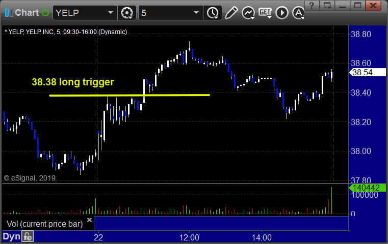 From the Messenger/Tradesight_st Twitter Feed, YELP triggered long (with market support) and worked enough for a partial:
