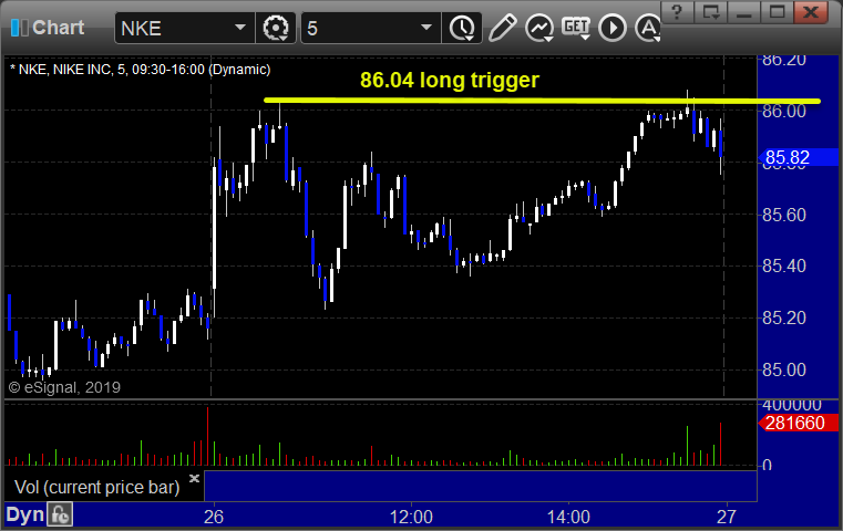 With each stock’s recap, we will include a (with market support) or (without market support) tag, designating whether the trade triggered with or without market directional support at the time. Anything in the first five minutes will be considered WITHOUT market support because market direction cannot be determined that early. ETF calls do not require market support, and are thus either winners or losers.