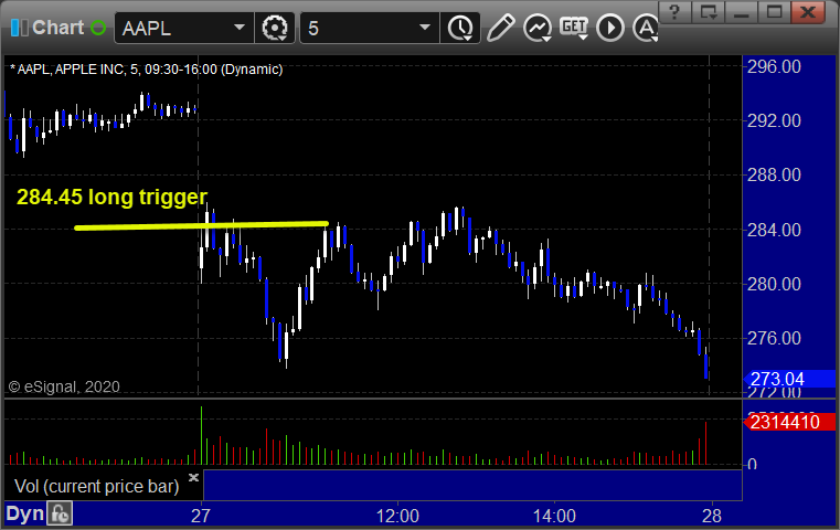 From the Messenger/Tradesight_st Twitter Feed, Rich’s AAPL triggered long (with market support) and worked enough for a partial the way we trade AAPL: