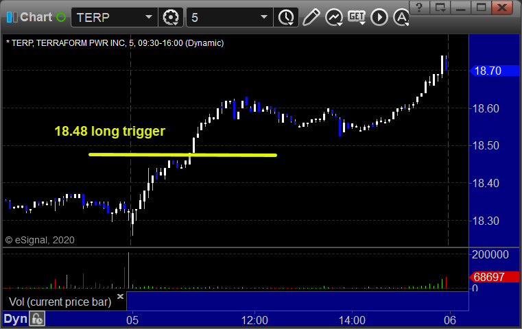 With each stock’s recap, we will include a (with market support) or (without market support) tag, designating whether the trade triggered with or without market directional support at the time. Anything in the first five minutes will be considered WITHOUT market support because market direction cannot be determined that early. ETF calls do not require market support, and are thus either winners or losers.