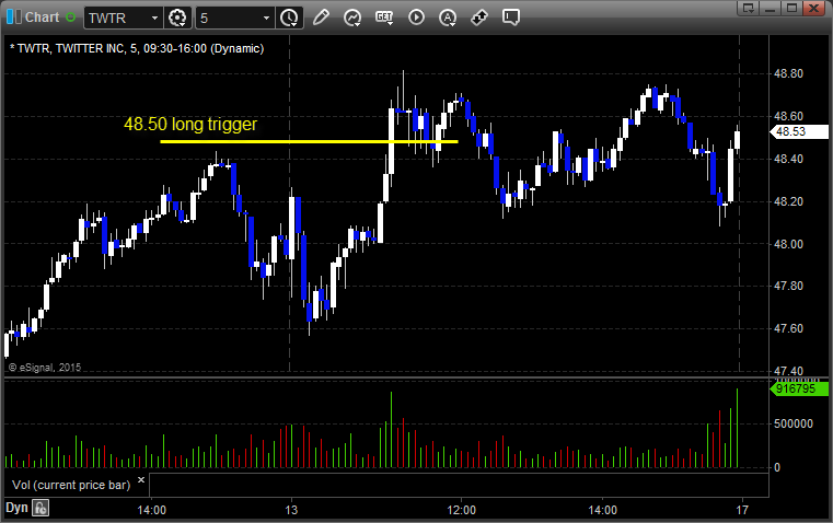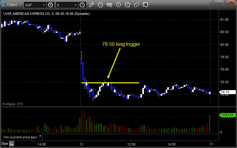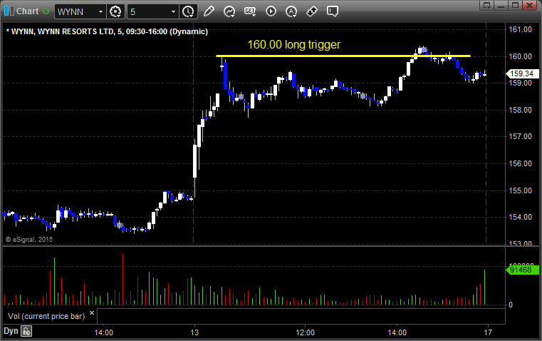 With each stock’s recap, we will include a (with market support) or (without market support) tag, designating whether the trade triggered with or without market directional support at the time. Anything in the first five minutes will be considered WITHOUT market support because market direction cannot be determined that early. ETF calls do not require market support, and are thus either winners or losers.