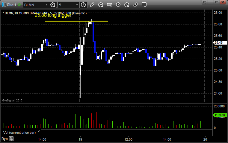 BLMN triggered long (with market support, by a penny) and didn’t work: