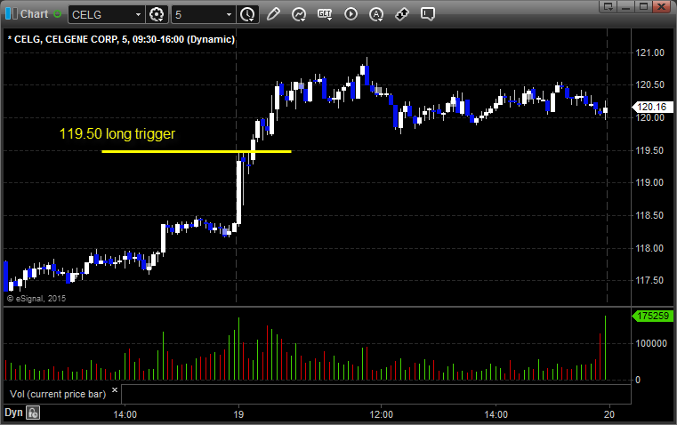From the Messenger/Tradesight_st Twitter Feed, Mark’s CELG triggered long (with market support) and worked: