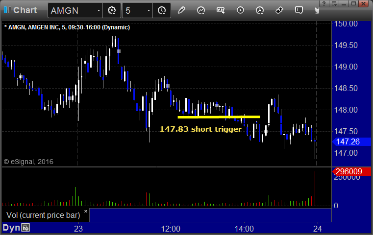 His AMGN triggered short (with market support) and worked enough for a partial: