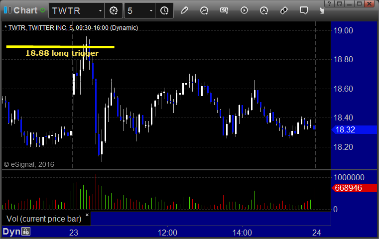 With each stock’s recap, we will include a (with market support) or (without market support) tag, designating whether the trade triggered with or without market directional support at the time. Anything in the first five minutes will be considered WITHOUT market support because market direction cannot be determined that early. ETF calls do not require market support, and are thus either winners or losers.