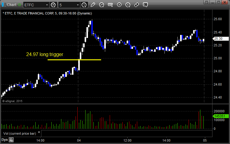 ETFC triggered long (with market support) and worked (about 4 minutes and 50 seconds into the market: