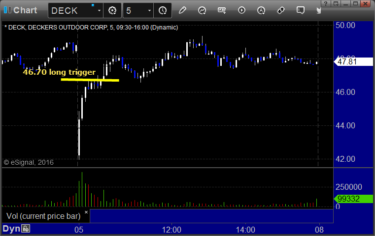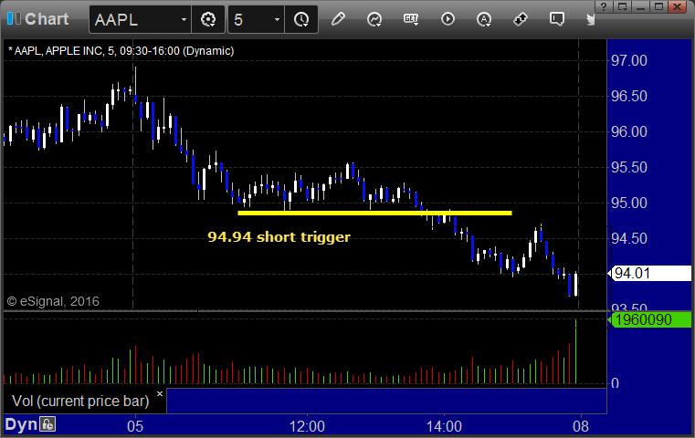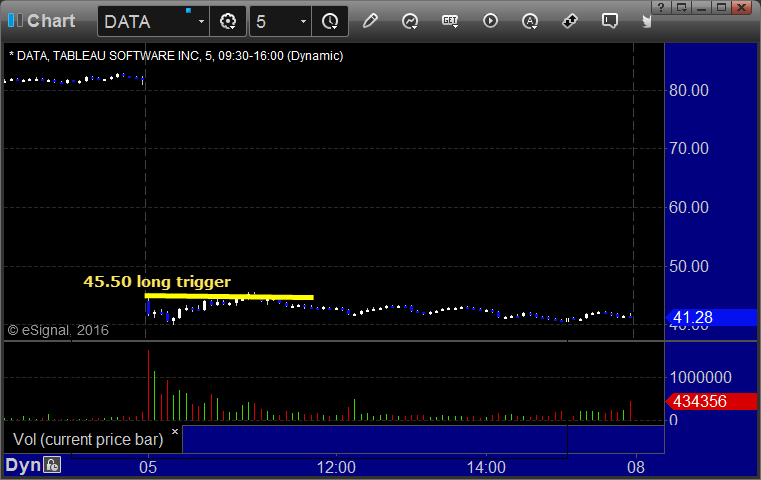With each stock’s recap, we will include a (with market support) or (without market support) tag, designating whether the trade triggered with or without market directional support at the time. Anything in the first five minutes will be considered WITHOUT market support because market direction cannot be determined that early. ETF calls do not require market support, and are thus either winners or losers.