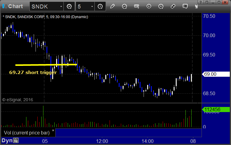 From the Messenger/Tradesight_st Twitter Feed, SNDK triggered short (with market support) and worked: